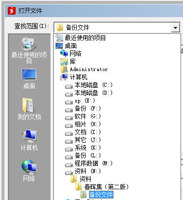 5.并且文件类型选备份文件,选择对应最近的备份文件,即可打开备份文件了。